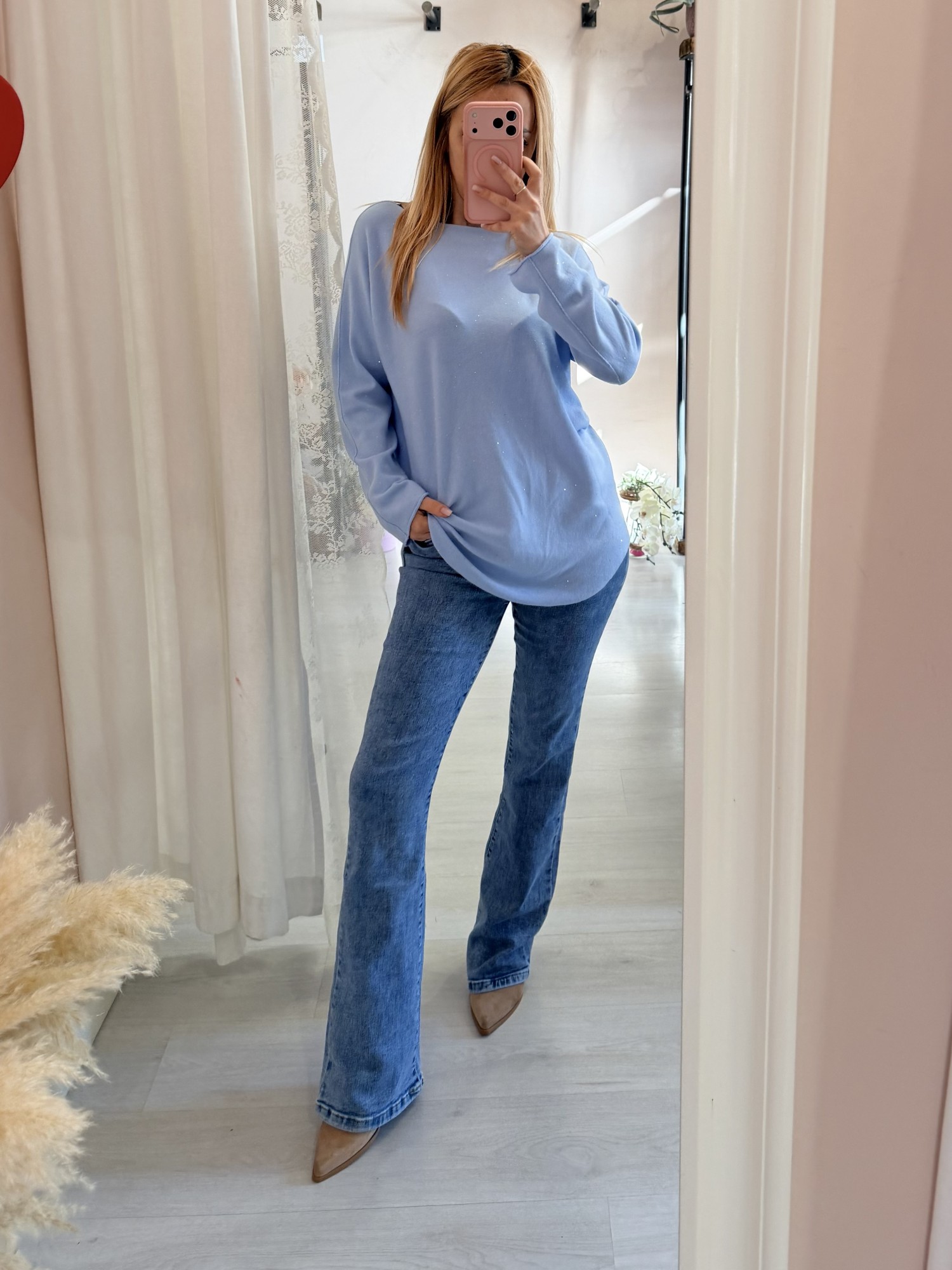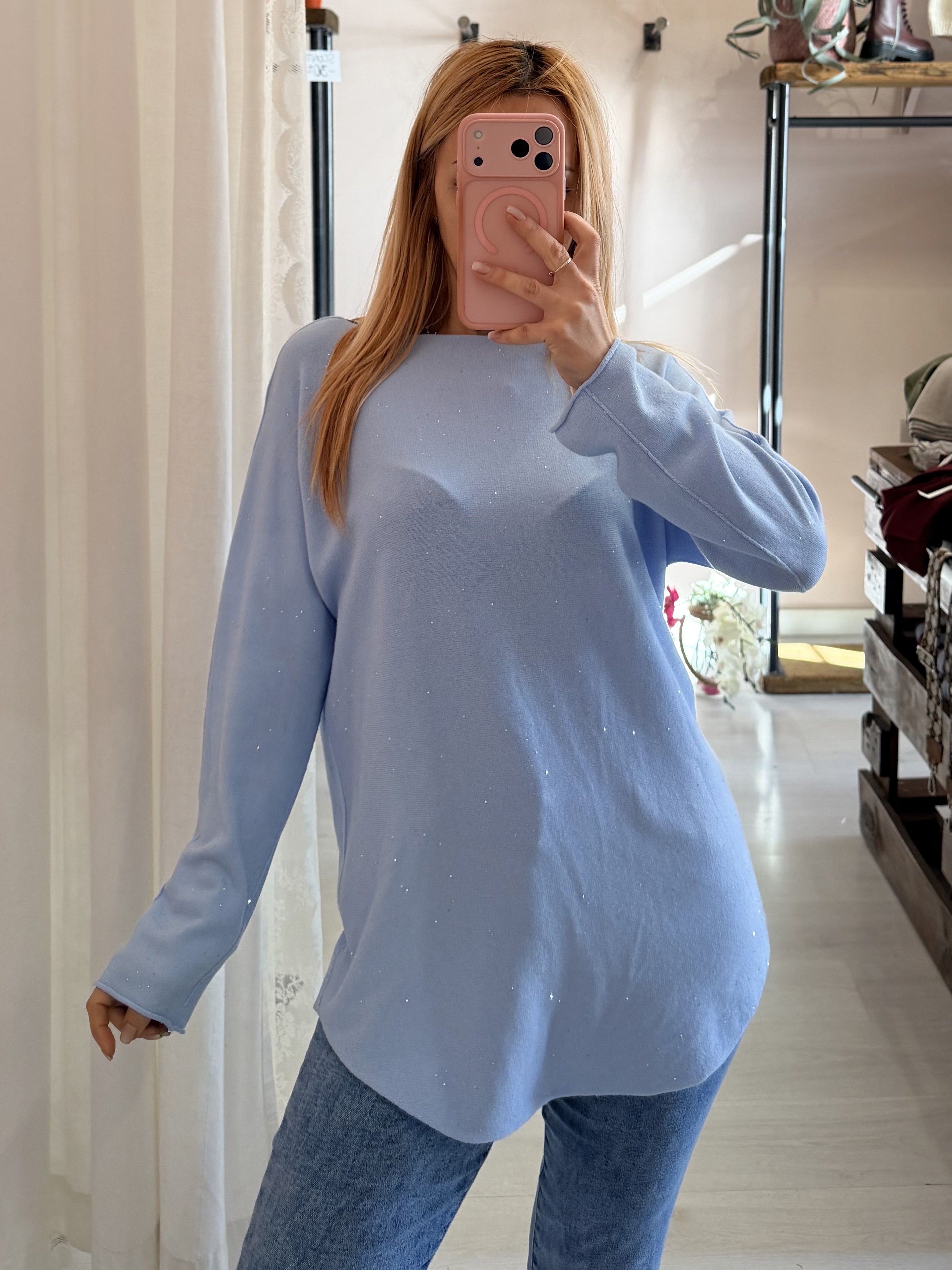 Maxi maglia micropaillettes celeste