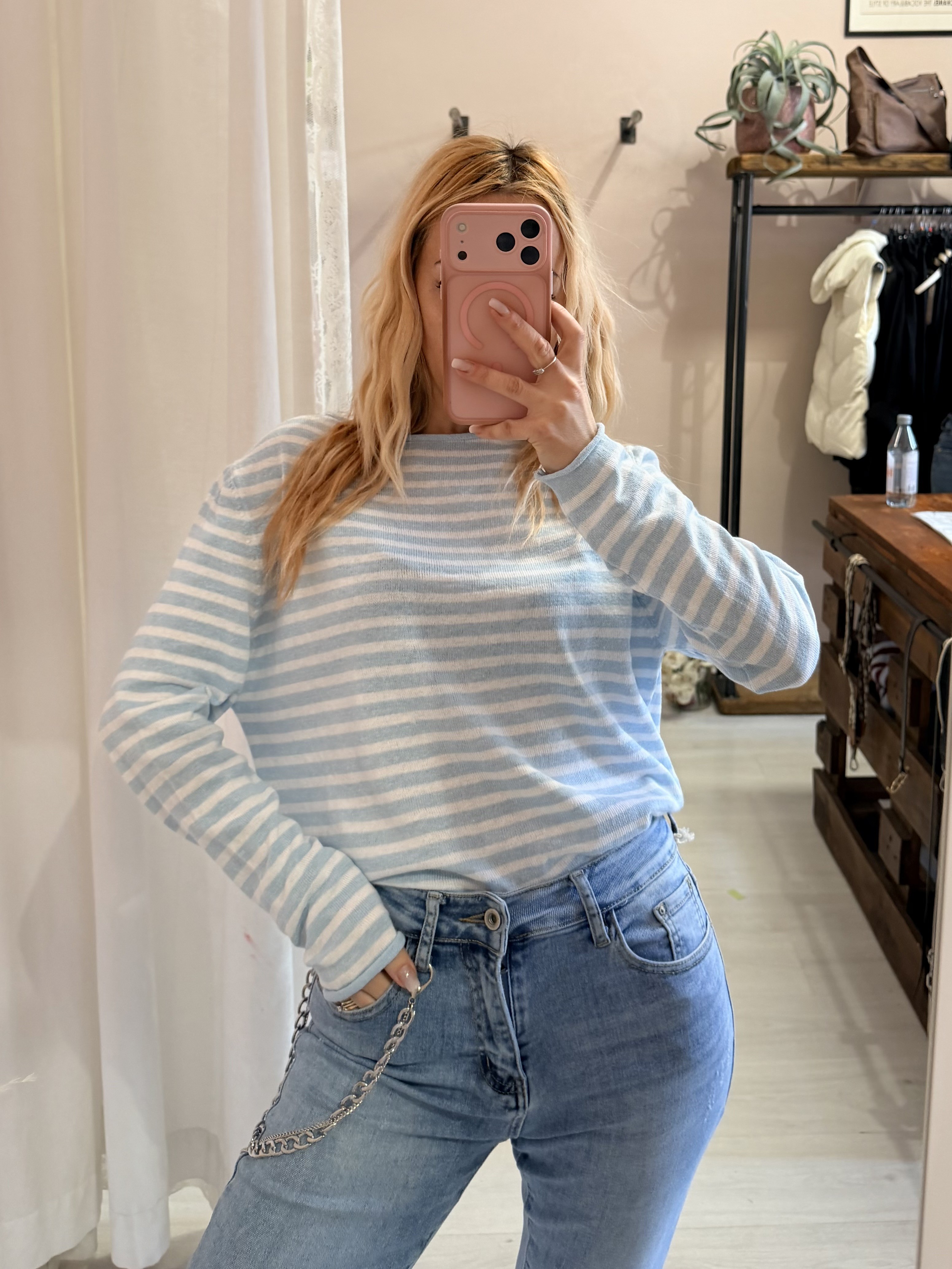 Maglia a righe celeste e bianca