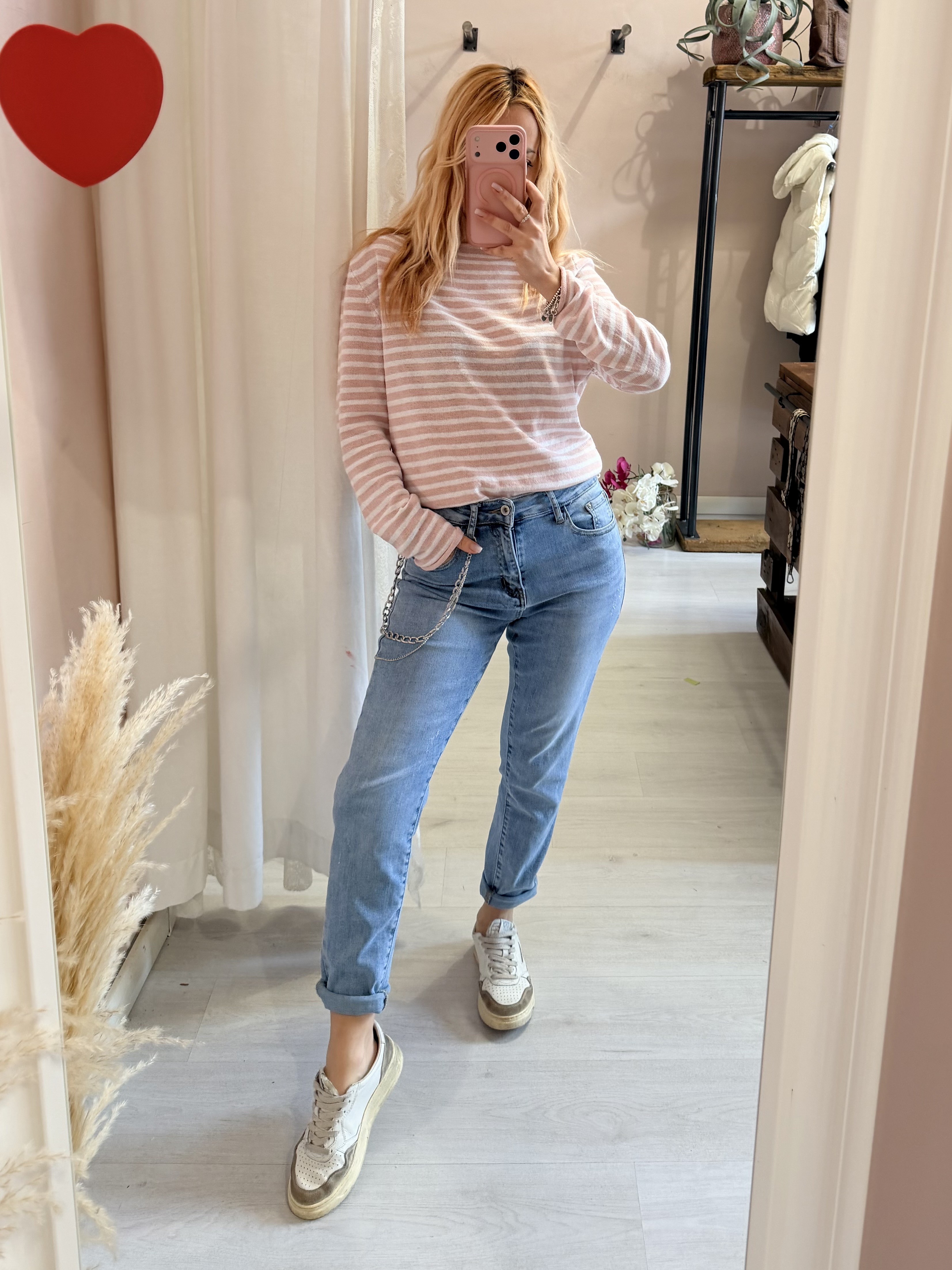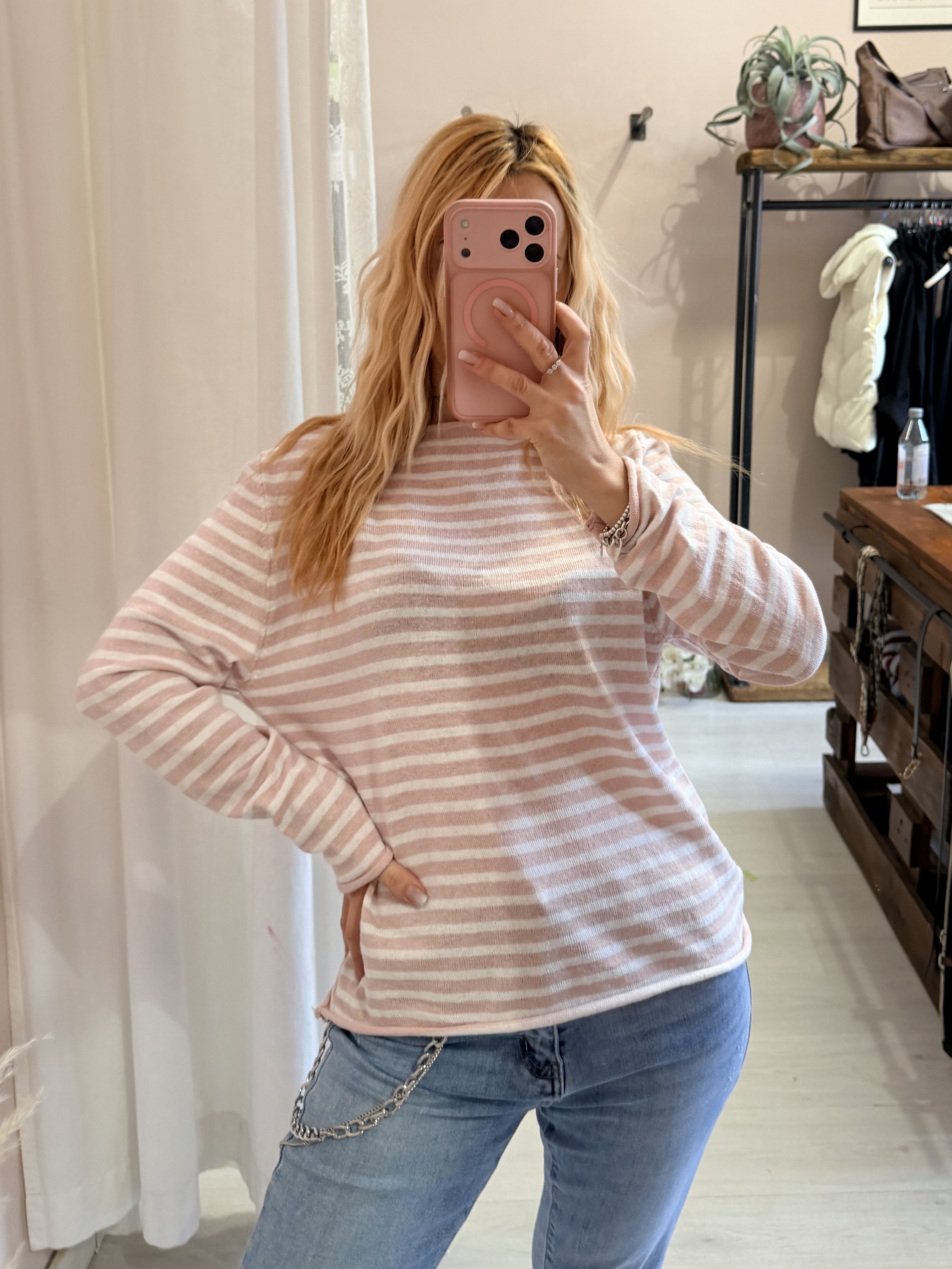 Maglia a righe rosa e bianche