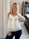 Sensuale e romantica questa magliettina in pizzo con lo scollo a v arricchito da una ruches