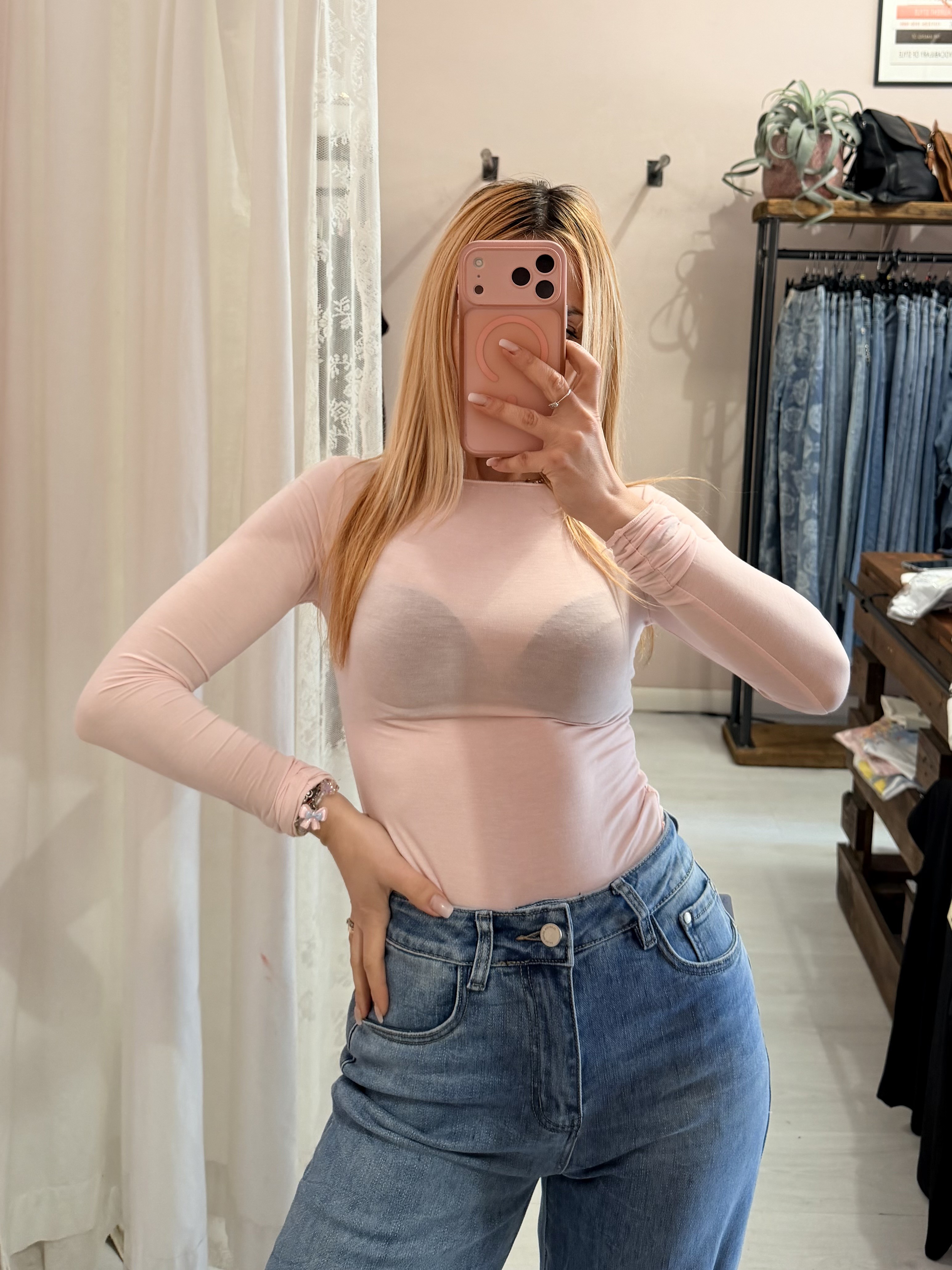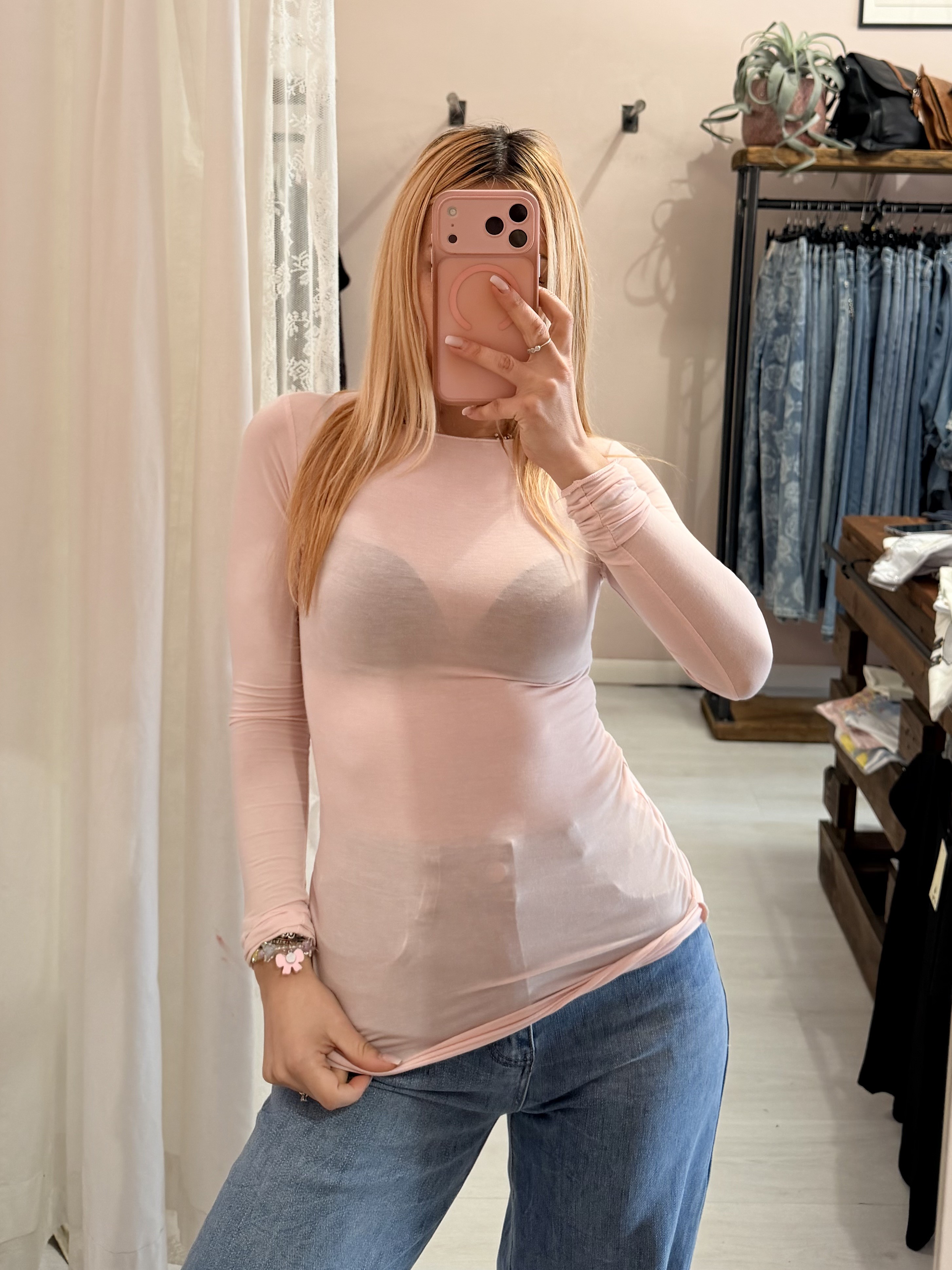 Maglia misto seta rosa