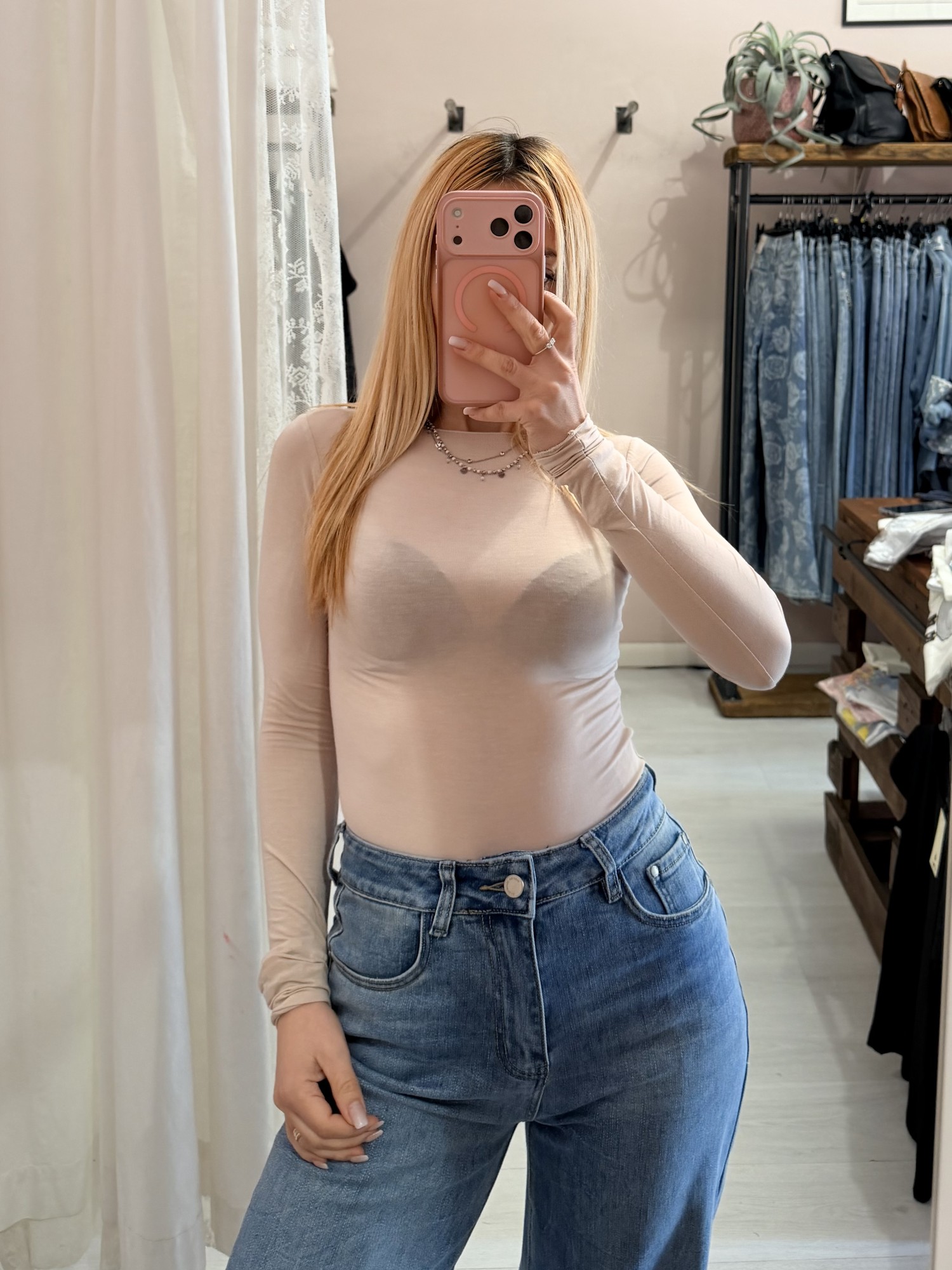 Maglia misto seta beige