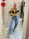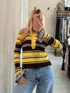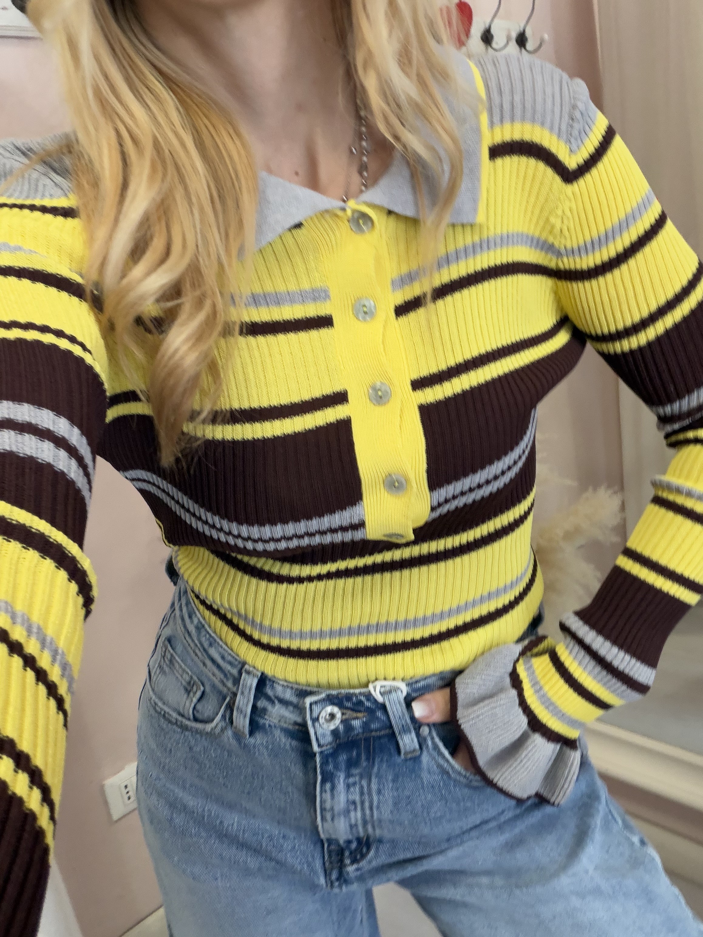 Maglia polo grigia e gialla