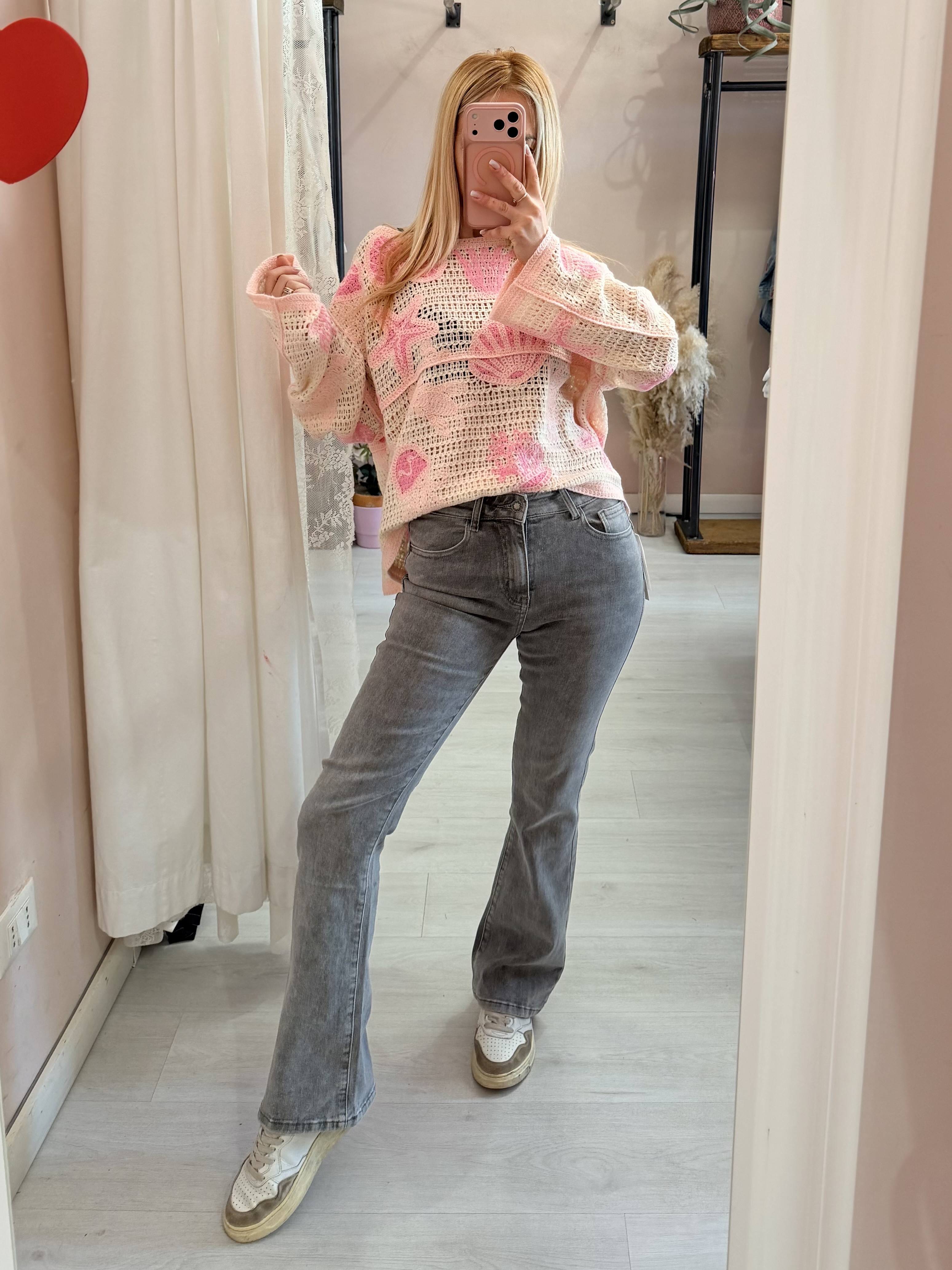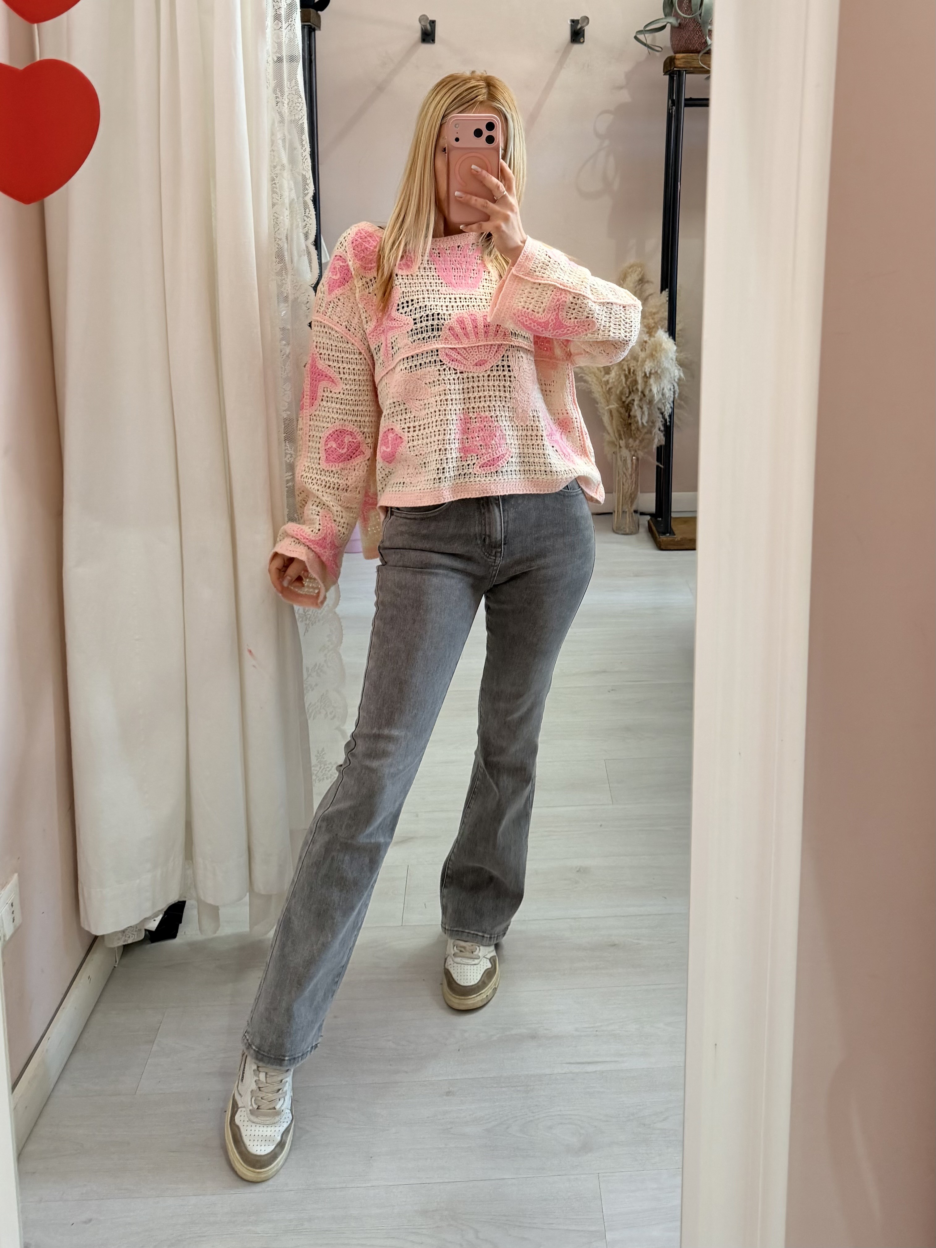 Maglia crochet oceano rosa
