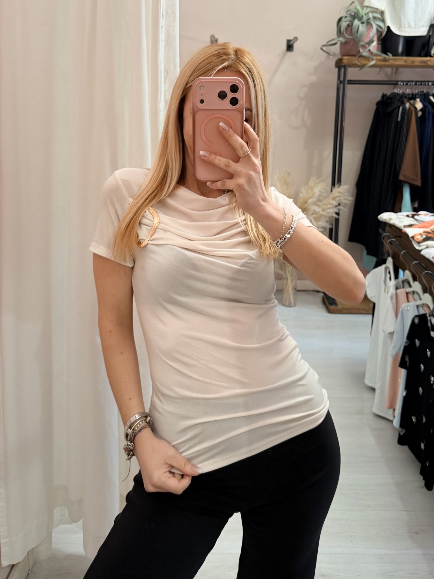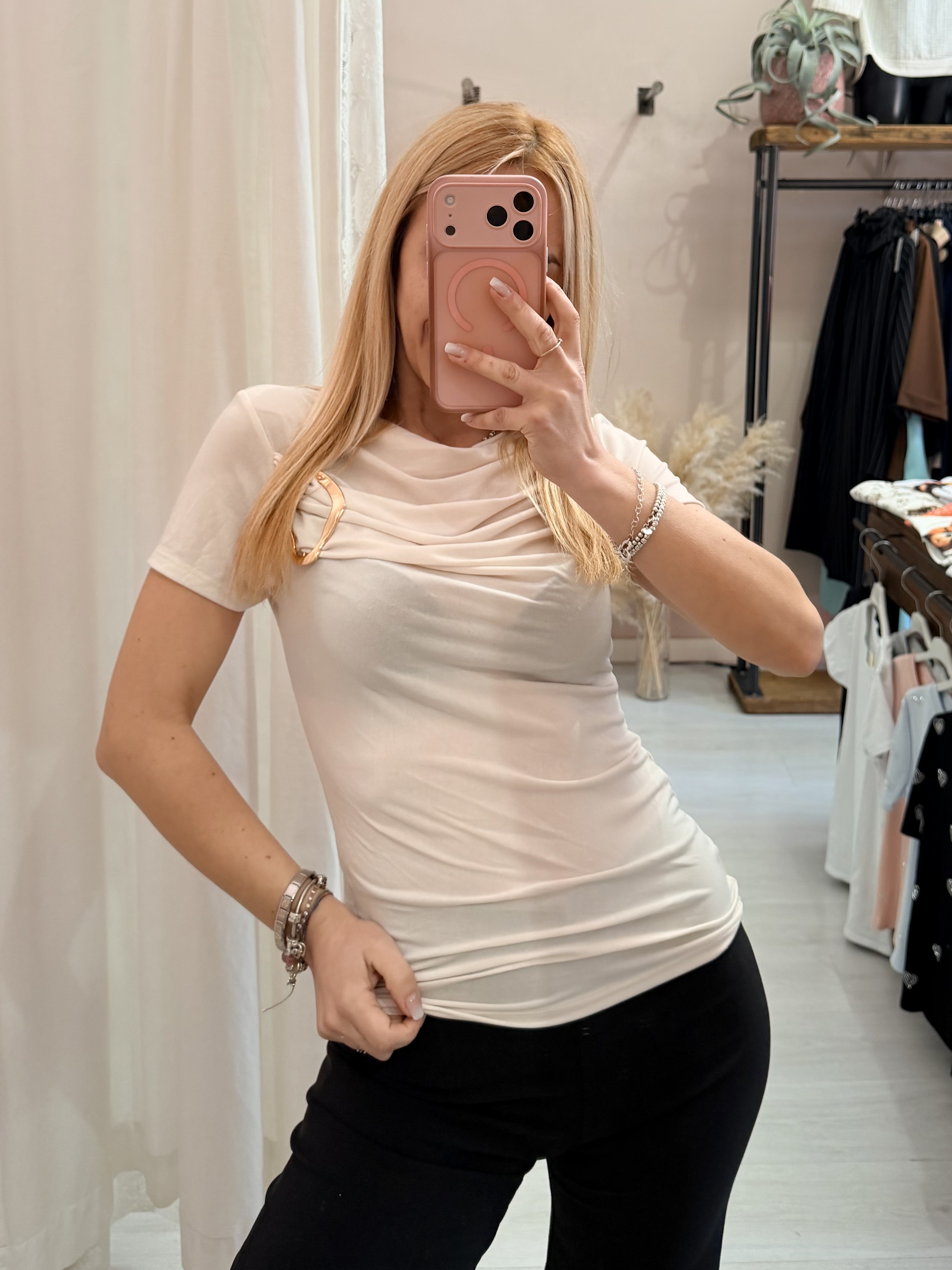una magliettina che fa da jolly nel nostro armadio, perfetta con outfit completi come coordinati tailleur come sottogiacche...