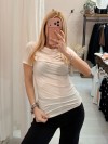 Maglia scollo morbido inserto gold beige