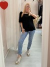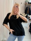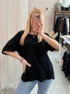 Maglia blusa fiori ricamati nera