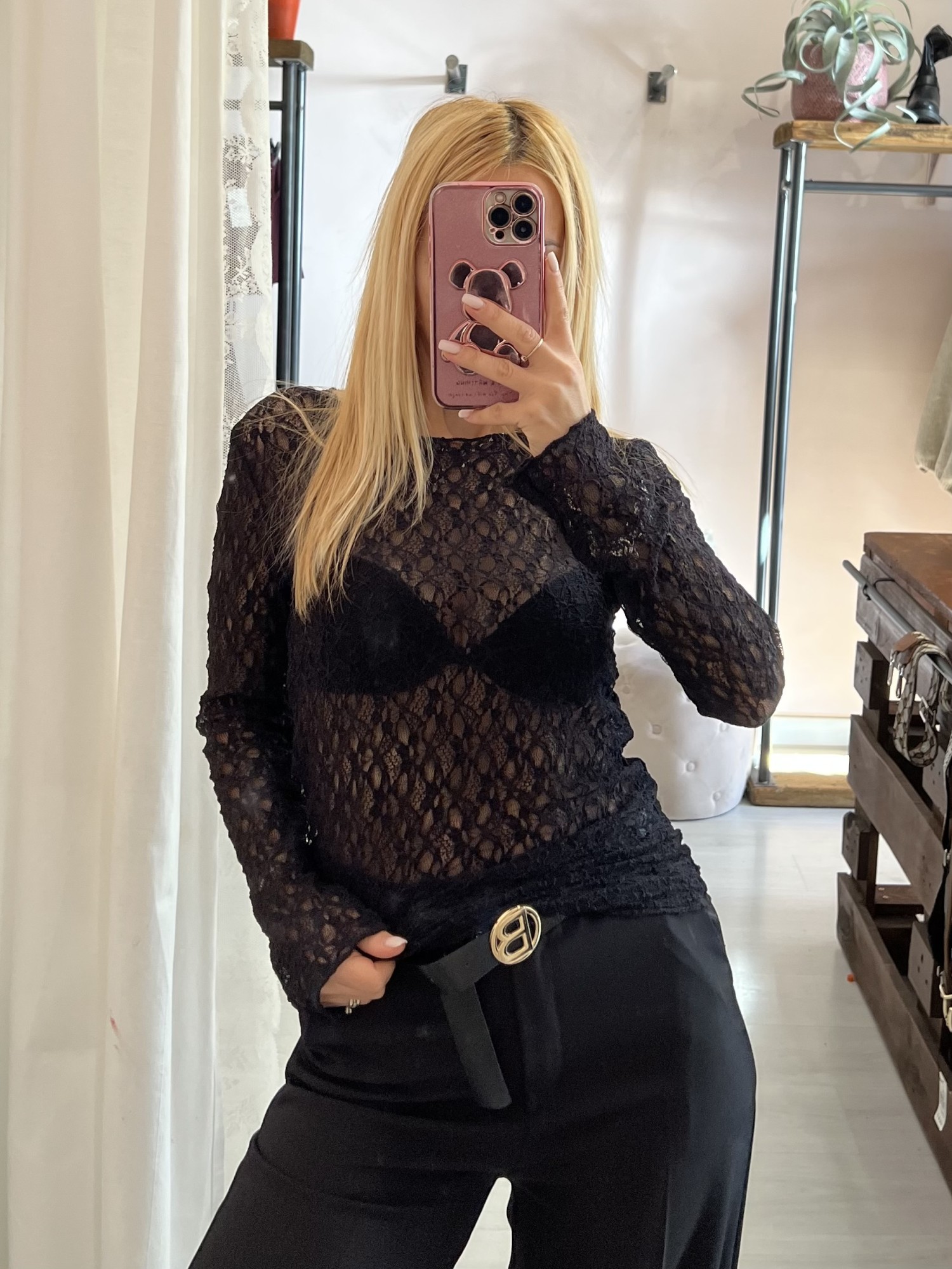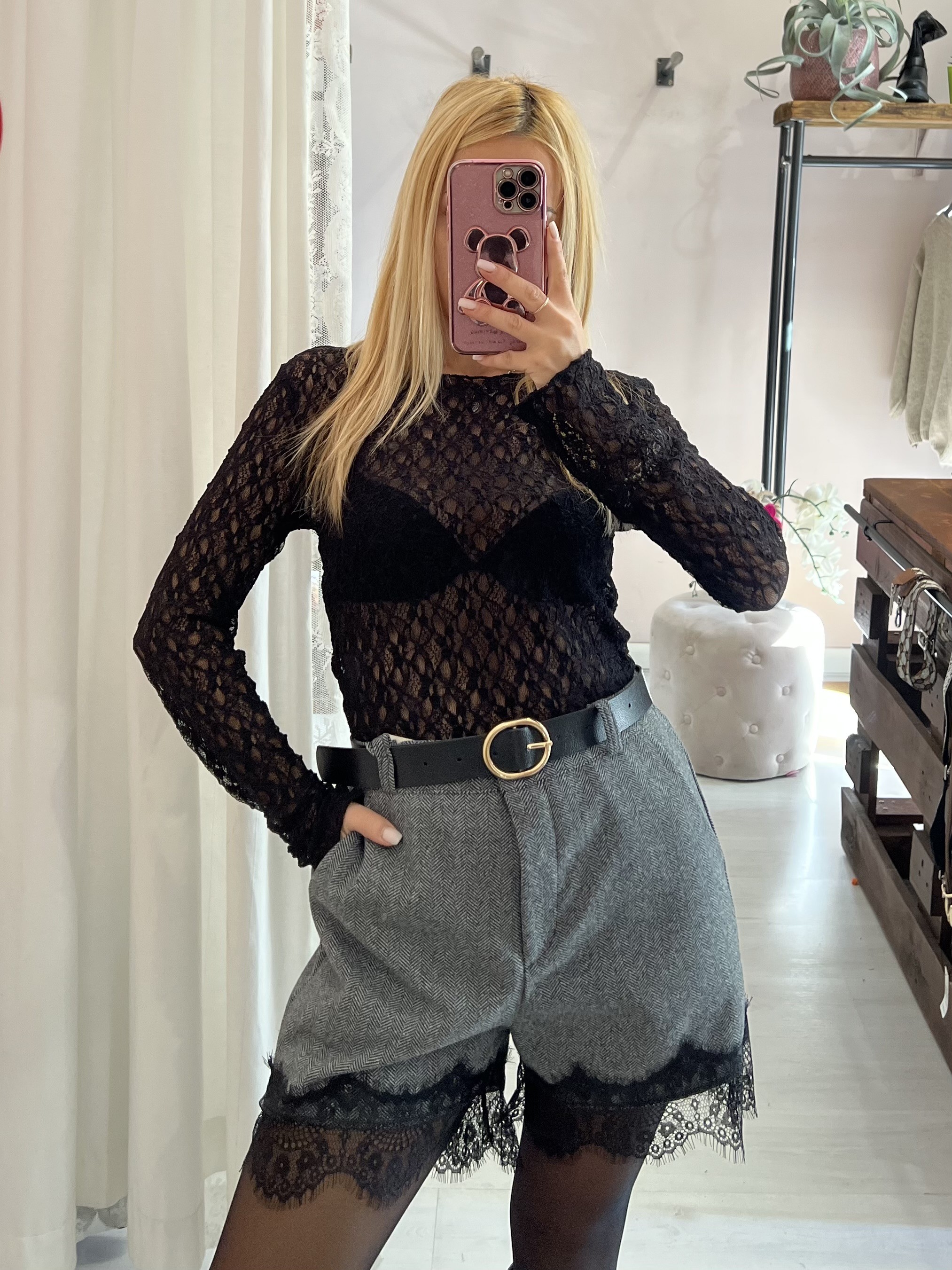 Maglia LONDON in pizzo nera