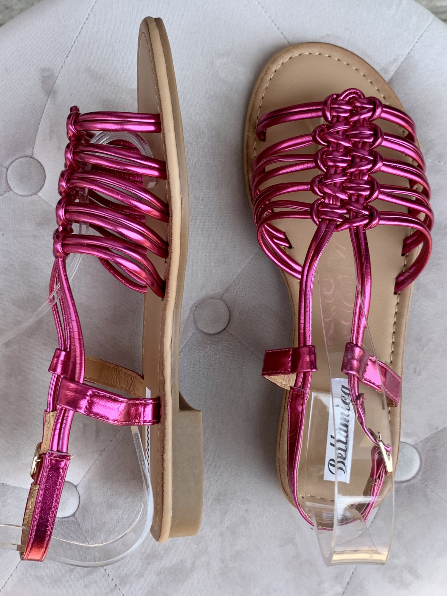 Sandali lucidi ragnetto con nodi FUCSIA