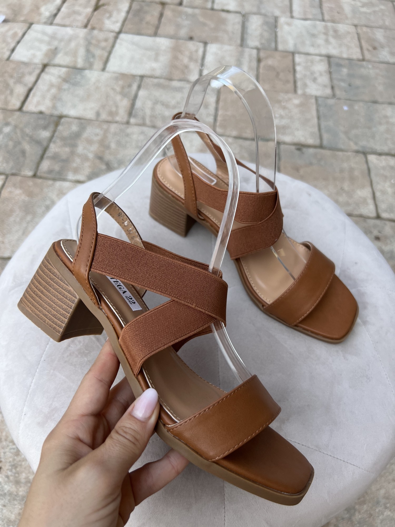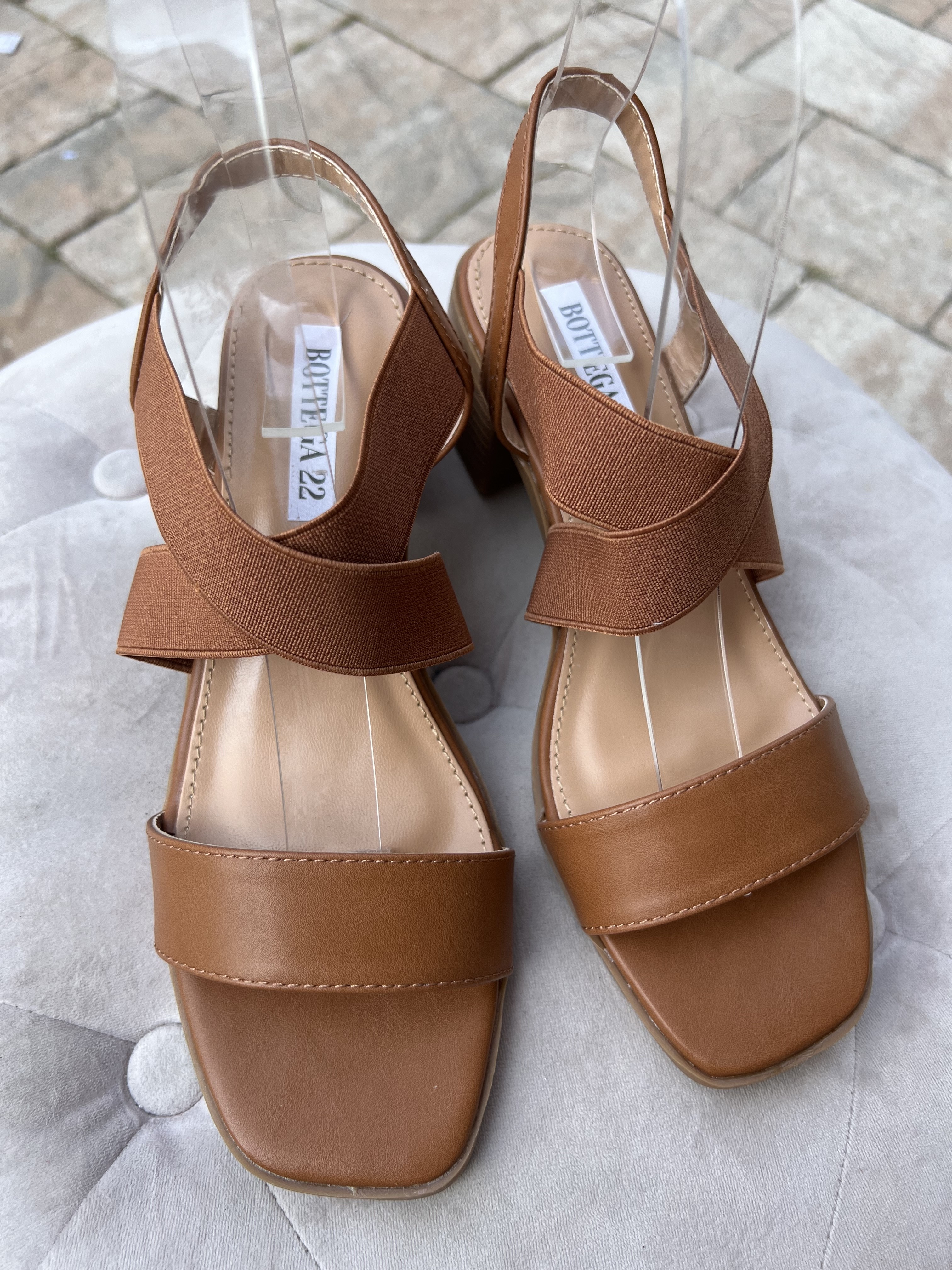 Sandali tacco largo cinturini elastici camel