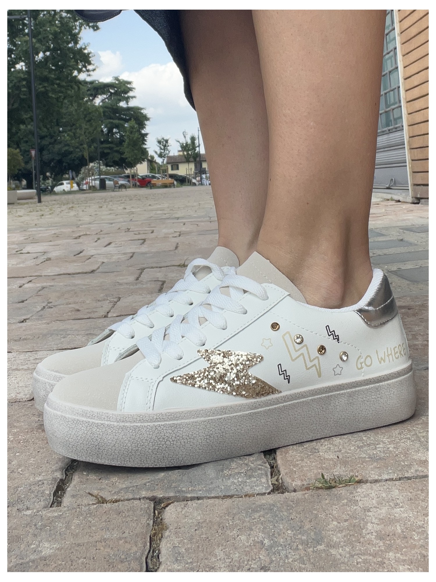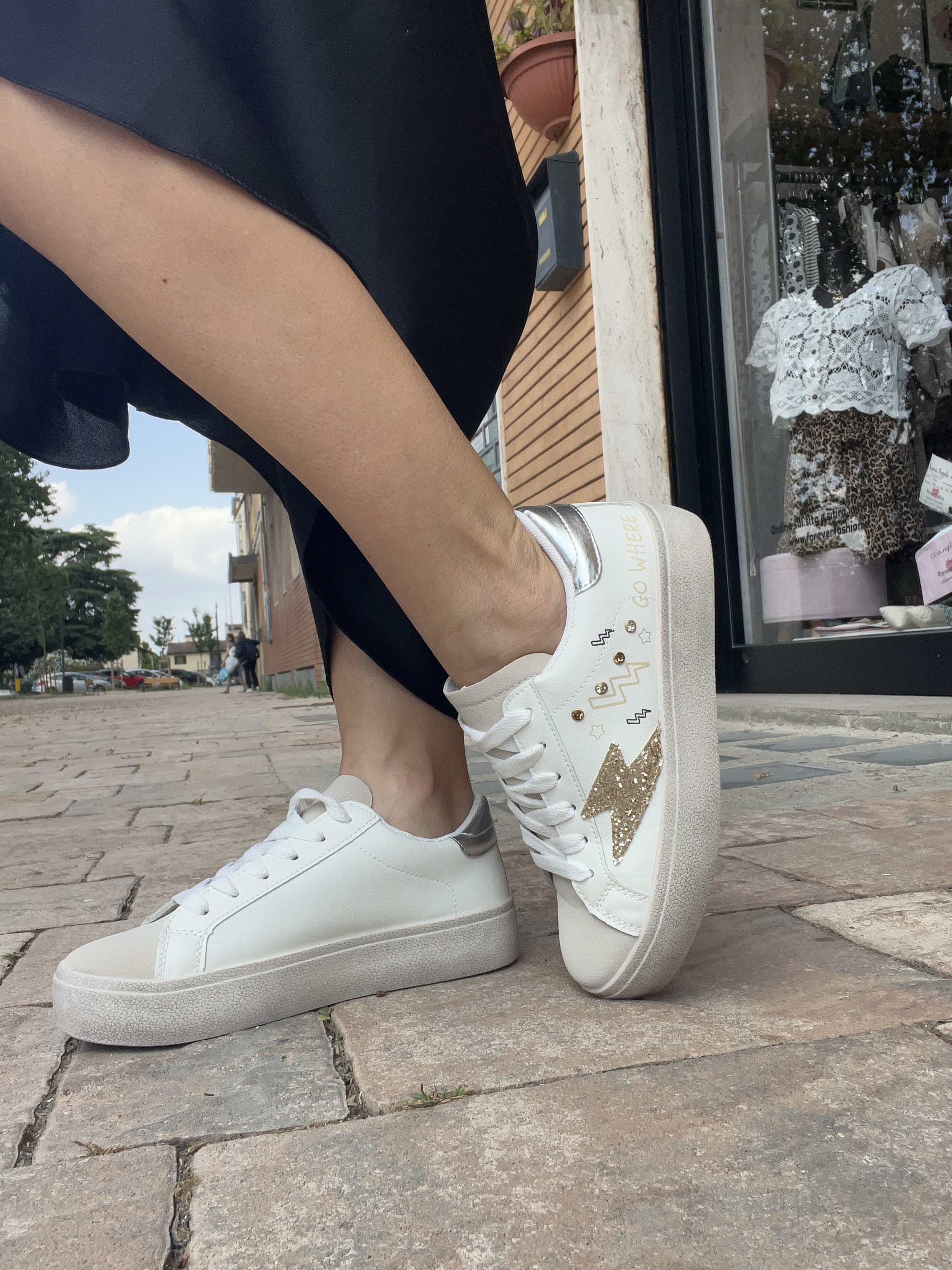 Comoda scarpa da ginnastica bianca con dettagli oro